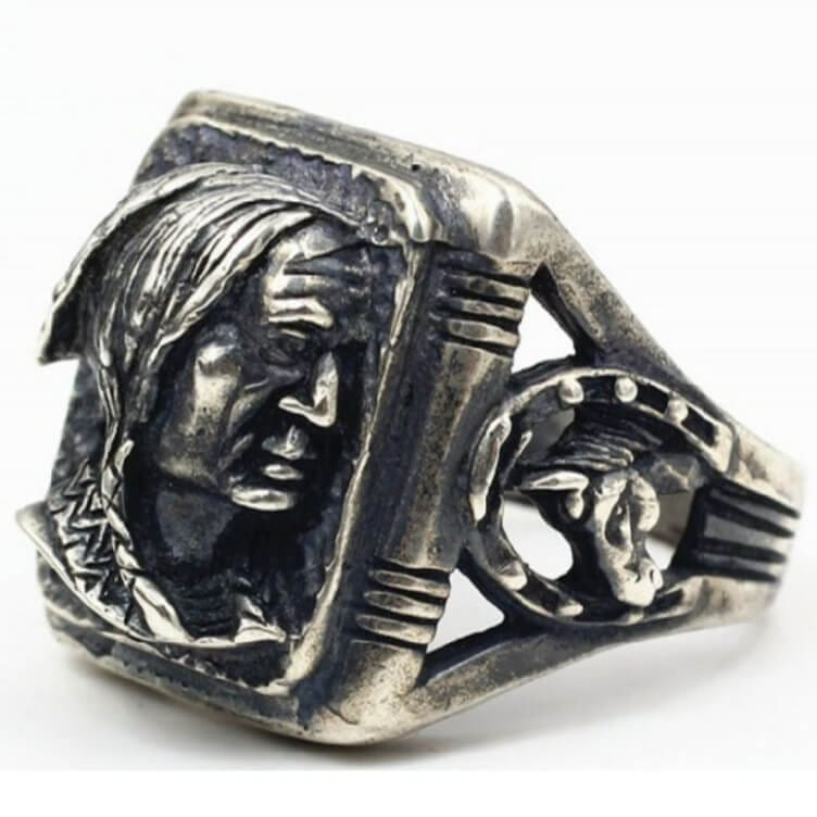 Avec son visage de natif américain, cette élégante petite bague séduira ceux qui apprécient les bijoux distinctifs.