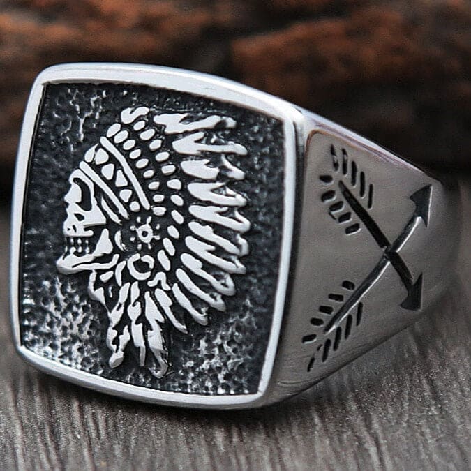 Imprégnez votre style d’une touche audacieuse avec la bague crâne de chef Indien. Son design distinctif incarne le courage des guerriers Amérindiens.