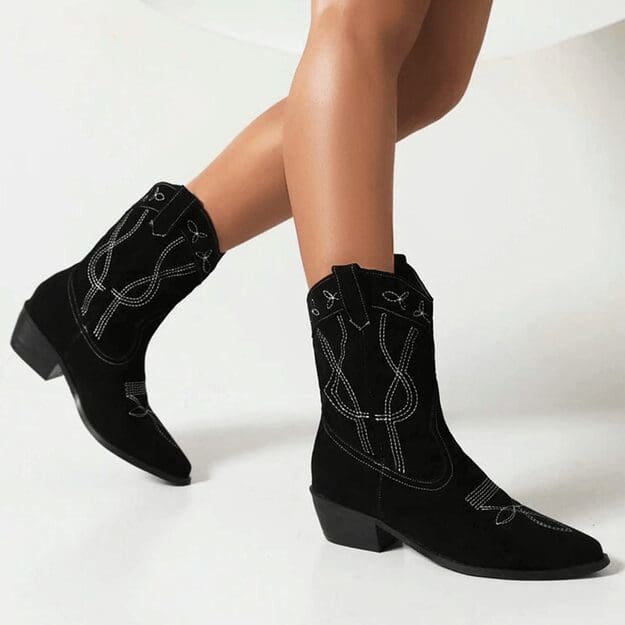 Tombez sous le charme des bottines western noires pour femmes, chic et sophistiquées, parfaites pour ajouter un cachet irrésistible à votre garde-robe.