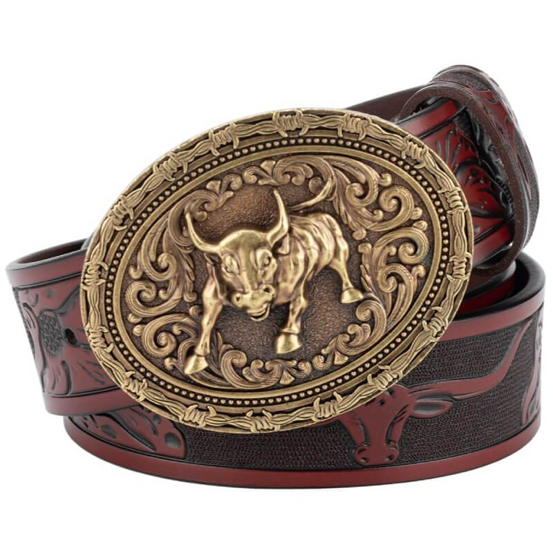 Avec sa boucle représentant un taureau de rodéo, notre ceinture cowboy fera sensation à coup sûr.