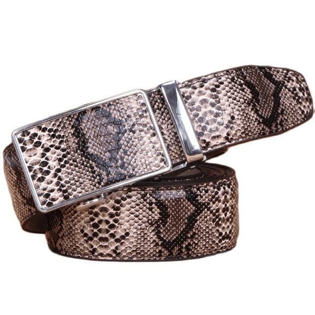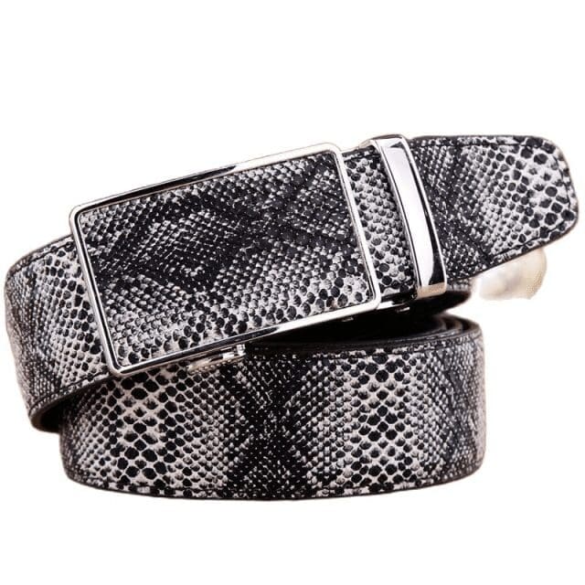 Avec sa boucle rectangulaire et sa sangle en cuir doublée imitation peau de serpent, cette ceinture réunit style et praticité. En effet, grâce à sa boucle automatique, elle s’ajuste aisément.