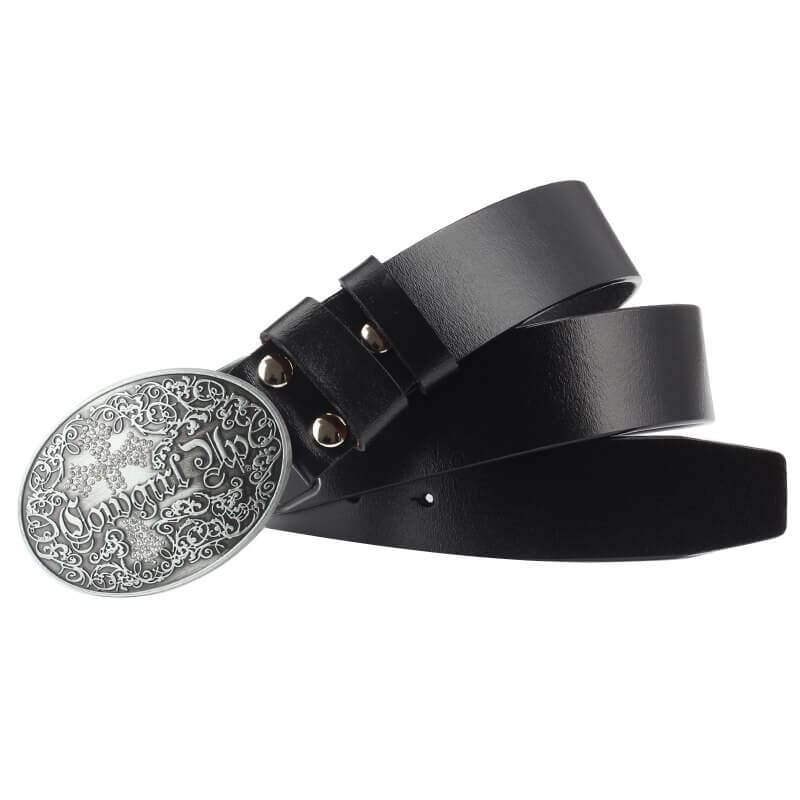 Cette ceinture western intègre une sangle en cuir double couche et une boucle ornée de strass aux motifs floraux uniques. De plus, elle est dotée d’un mécanisme à vis permettant de changer facilement de boucle.