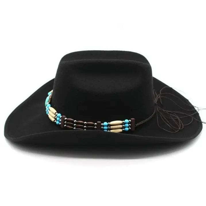 Confectionné avec un soin particulier, ce chapeau de cowboy est décoré d’un bandeau aux accents amérindiens et est pourvu d’une doublure pour un maximum de confort.