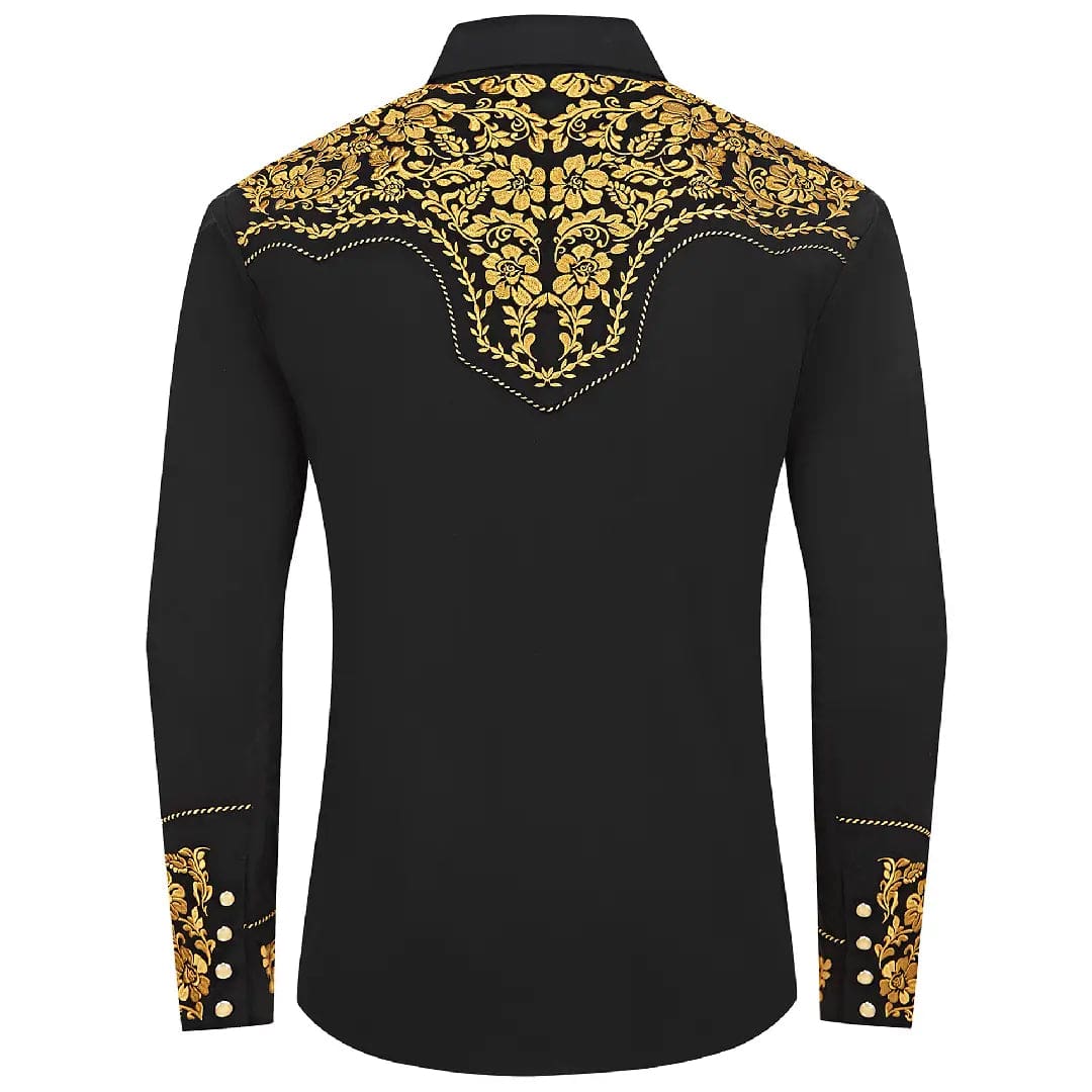 Enrichie de superbes broderies western, cette chemise cowboy séduira tous les amateurs du style américain. Associée à un jean simple et une cravate bolo, elle garantit un effet « waouh ».