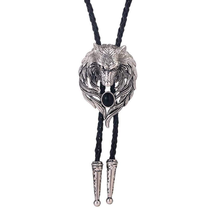 Ornée d’un médaillon représentant une tête de loup, la cravate western pour homme apportera une touche unique à votre look country.